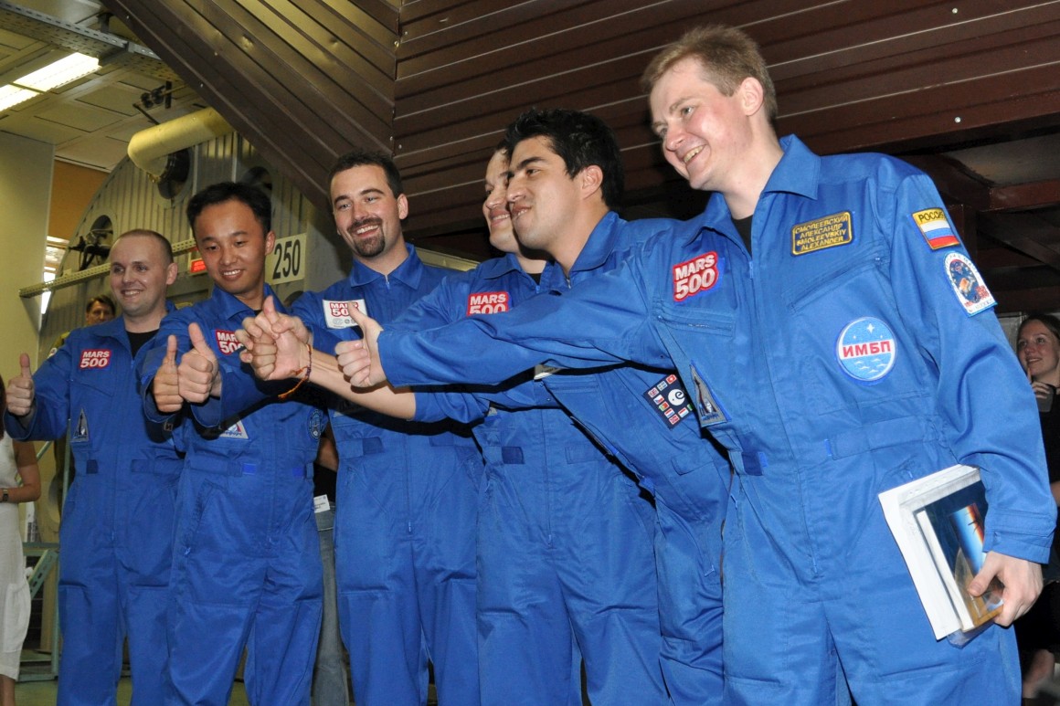 Até agora, só quatro pessoas passaram à volta de um ano no espaço, com o recorde de 437 dias na já inexistente estação espacial Mir detido por Valery Polyakov. Cá em baixo, a simulação mais longa de uma missão era de 240 dias, com quatro russos.